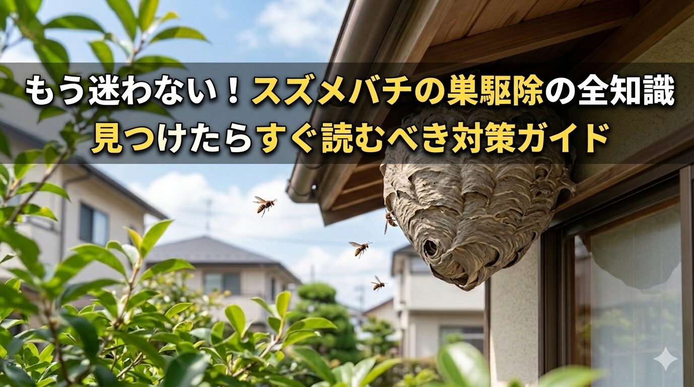庭先やベランダでスズメバチの巣を見つけ、不安や恐怖を感じていませんか?この記事を読めば、危険なスズメバチの種類や巣の特徴、活動時期といった基礎知識から、自力で安全に駆除できる巣の判断基準、具体的な手順と注意点、専門業者に依頼すべき条件、優良業者の選び方、費用相場まで、スズメバチの巣駆除に関する全知識が得られます。駆除後の予防策や、万が一刺された際の対処法、自治体への相談窓口も網羅。このガイドを読めば、スズメバチの巣を安全かつ確実に駆除し、安心を取り戻すための最善策が見つかるでしょう。